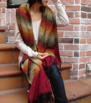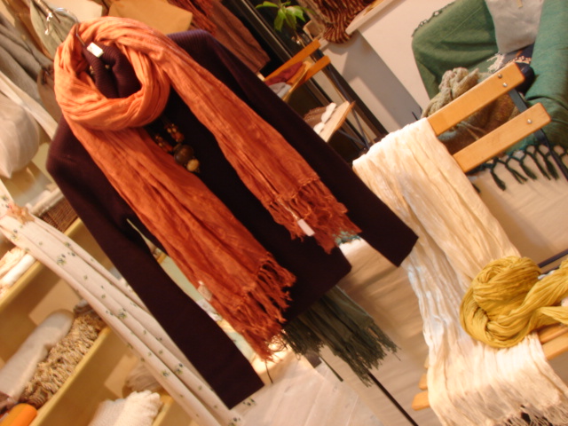 さて今回は新入荷商品の大判ストールを飾ってきました